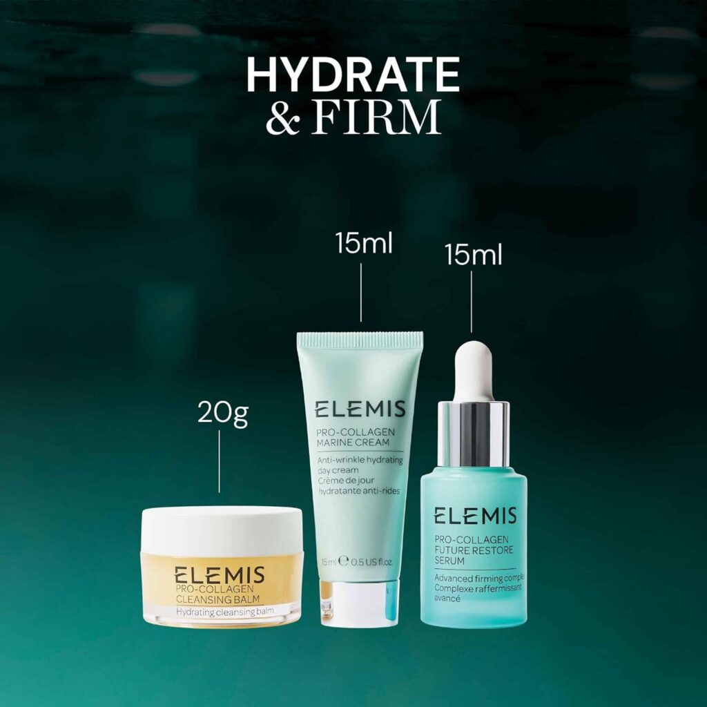 The set contains a curated selection of ELEMIS’s most iconic products in travel-ready sizes. While exact items may vary slightly by edition, you can expect essentials such as the Pro-Collagen Cleansing Balm, Pro-Collagen Marine Cream, hydrating serums, and eye treatments. Together, they form a complete skincare regimen.